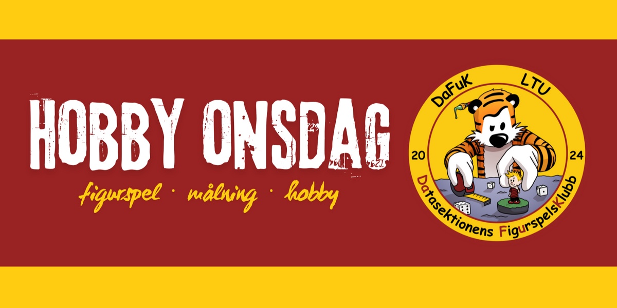 Välkommen till DaFuK:s Hobbyonsdag! Är du intresserad av figurspel, vare sig om det är måla, bygga eller spela är det bara att dyka upp! Ta med egna projekt, hjälp någon annan eller bara kom och häng! Finns saker för att pröva på även om man inte har eget. Gå gärna med i vår discord. Tagga DaFuK!!!