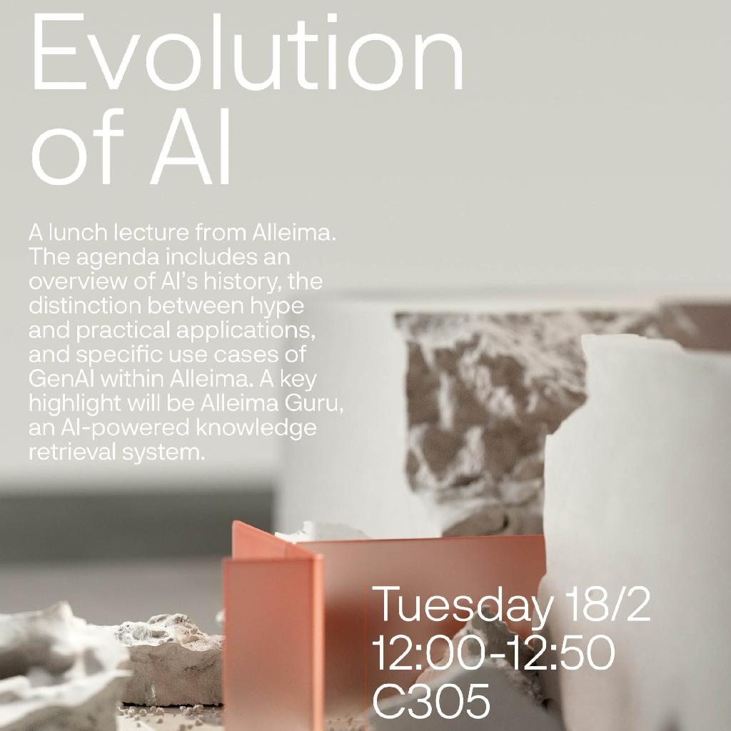 Alleima, tillsammans med Teknologkåren, bjuder in till en spännande lunchföreläsning där vi utforskar utvecklingen av Artificiell Intelligens (AI) – med särskilt fokus på Generativ AI (GenAI) och dess betydelse för Alleima.